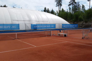 PUR slide tennis court with clay-feeling for indoors or outdoors.